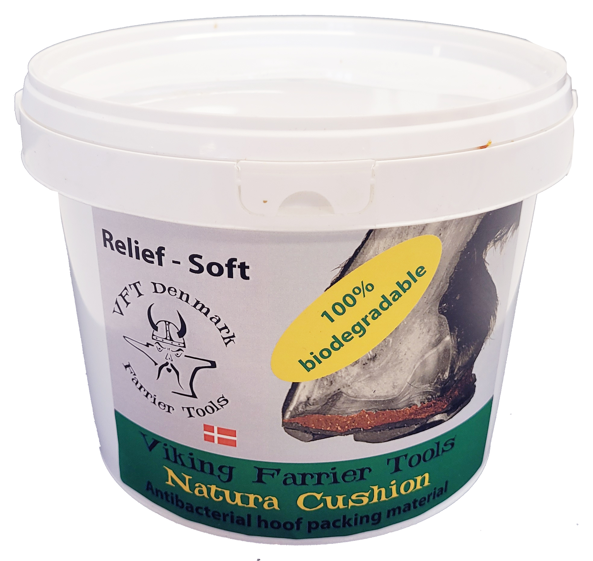 Relief er også veegnet til at fylde i gamle sømhuller, den hvide linei og andre hulle i hoven til at forebygge mod balkterie og svampeangreb